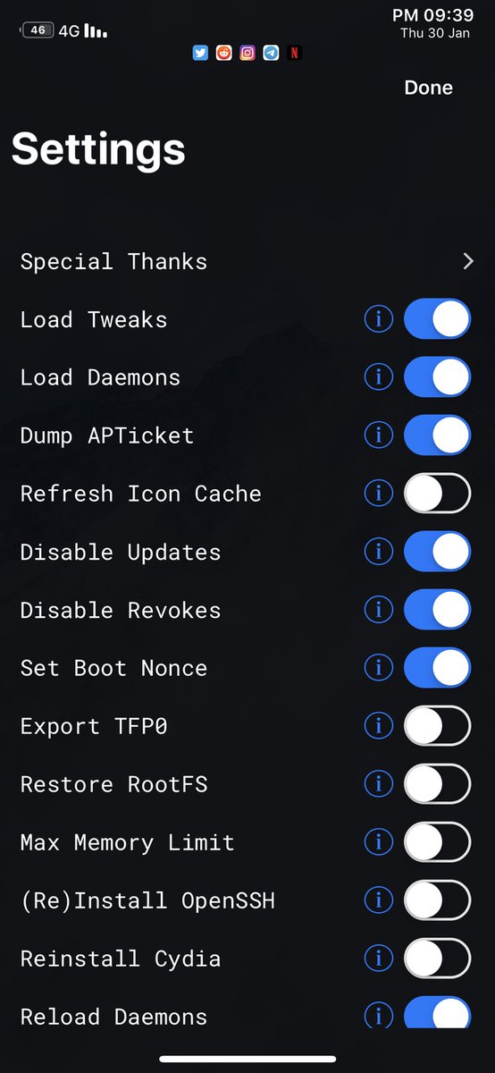 اما باقي انواع الجلبريك يفضل تثبيت اي اداة لإيقاف التحديث مثل OTADisabler او من خلال iCleaner pro في حال خروج من وضع الجلبريك انتبه تنام وتخلي ايفونك موصل بالوايفاي و الشاحن.pic.twitter.com/ku1xP7Nbix
