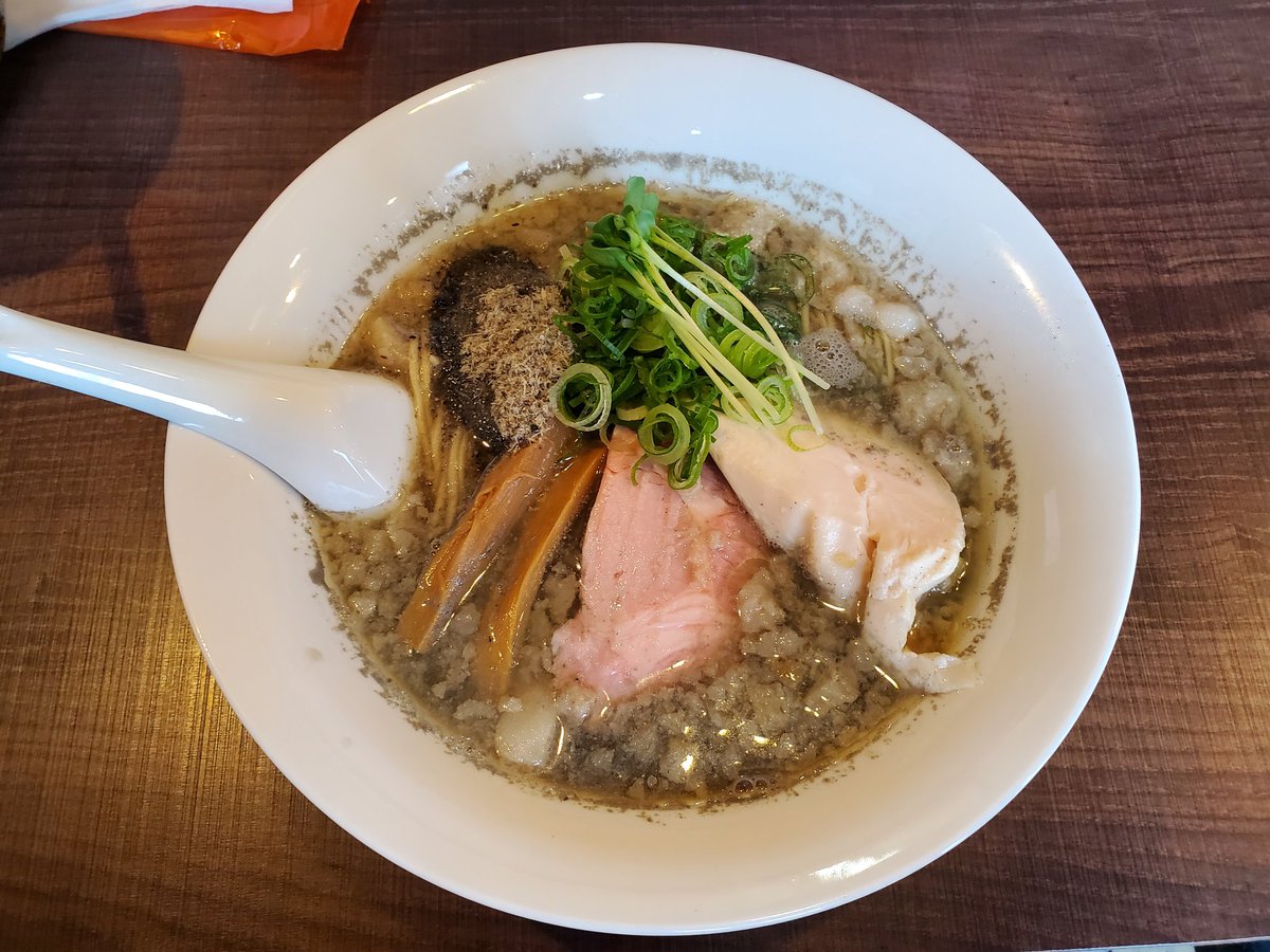 麺屋さすけ支店さん* 限定の濃厚煮干しfeat.イカ煮干しそば* とってもイカでした* 混んでたら諦めようと思ったけど、タイミングが合って良かった*pic.twitter.com/wqrPppkLAy