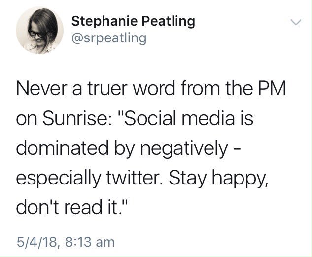 Altho tbf while Turnbull does not and can not know jackshit about my social media experience, as an Aust voter my experience of the federal government he leads is completely 100% negative and also a matter for deep disgust and at times utter despair