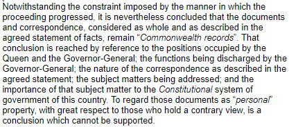 Just a reminder about Flick J's impassioned dissent, delivered nearly exactly one year ago in the Full Court of the Federal Court. 'To regard those documents as "personal" property ... is a conclusion which cannot be supported.' http://classic.austlii.edu.au/au/cases/cth/FCAFC/2019/12.html …pic.twitter.com/2w799uPcwK