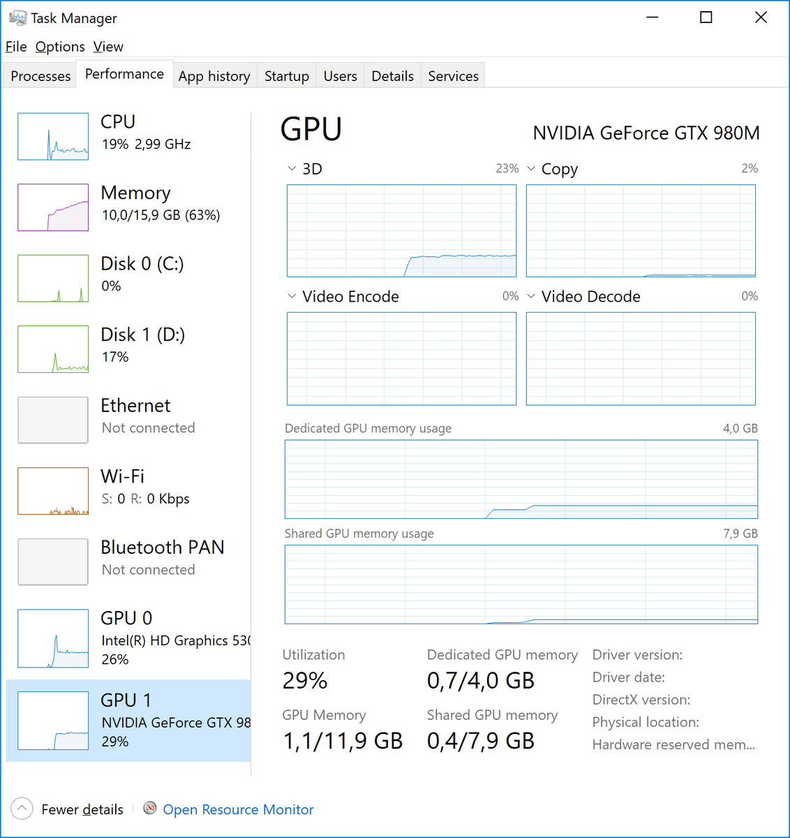 The twitter needs to know. Realtime grading of a 4K video + scaling + effects eats up just 30% of my gaming laptop's gpu. /me got used to editing at 1/4 at work =]pic.twitter.com/t3Pc4gk1aw
