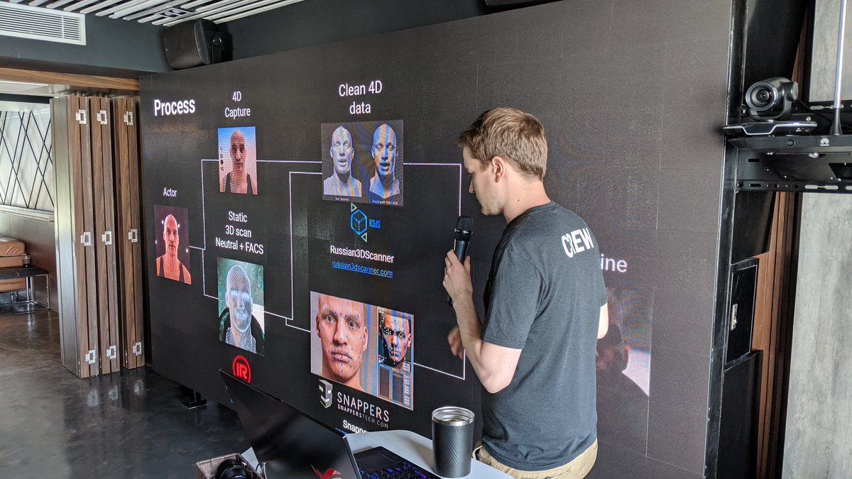 He's now talking about the tech behind the incredible realism of the protagonist's face, using 2 techniques to get ALL of the details: per-frame 4D scans (to capture the complete movement of muscles), and regular 3D scanning of poses for blend targets (to get small wrinkles).pic.twitter.com/rvZHO6lCM6