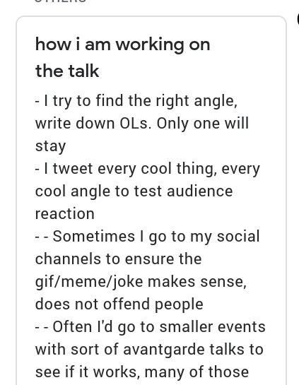 I am logging my process of creating a new talk for @LOGinEvents, gonna make a video explaining the whats and whys. Look for it here soon: https://www.youtube.com/channel/UCXwb8MCmuuPypRHV6ta5tog …pic.twitter.com/84okXbNYWH