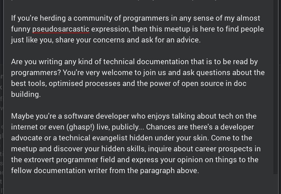 somewhat progressing. Need to do something about the "pasudosarcastic". ...And probably need to talk to that too extrovert programmer to be nicer to the doc writer...pic.twitter.com/yR0w4Chn25