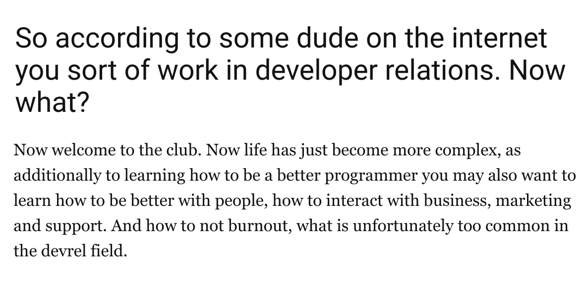 aaaaand it is out: https://dev.to/tooevangelist/are-you-a-developer-or-a-developer-relations-35i2 …