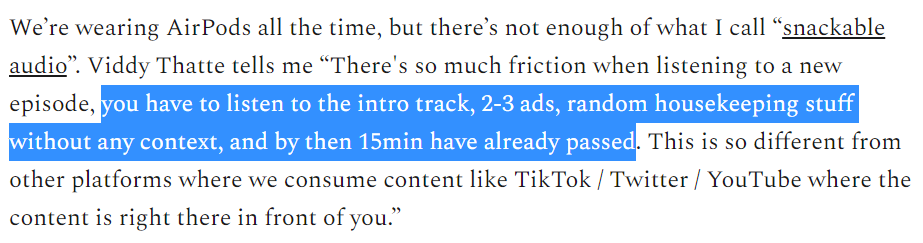 that's a paidcast, not a podcast then💀 @blinkist is a TL;DL for books what kinda makes sense. Folks often listen to the podds for the same reason they sub to youtubers - they love the personality. Would users want to get a summed up version of their fav personality? MMm dunno