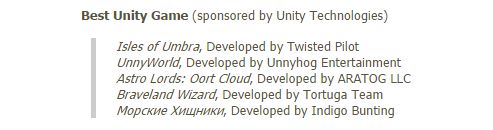 #IslesOfUmbra в списке номинантов Best Unity Game на #DevGAMM Awards. :)