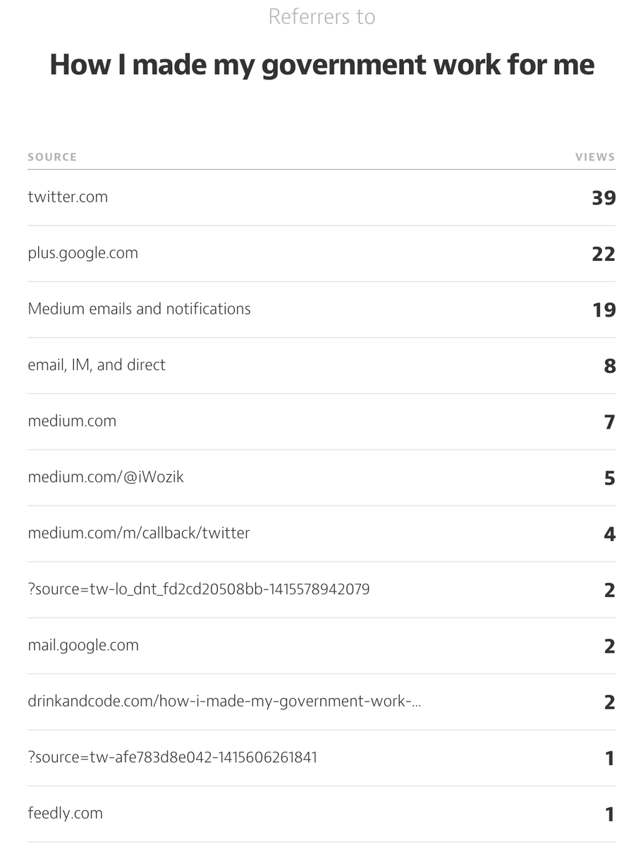 Referrers to my story at @Medium. 35 of 116 views generated by platform itself, others by twitter shares and !!! G+pic.twitter.com/FgYfeyfhh9