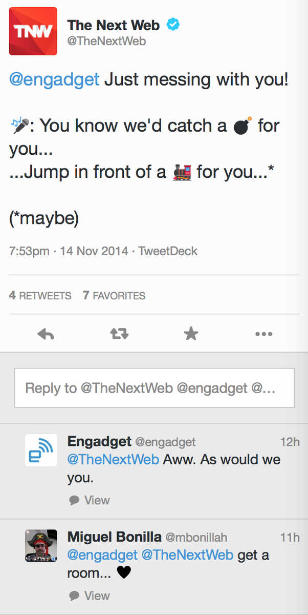 Ajoutez vos réflexions à n'importe quel Tweet avec une Réponse. Trouvez un sujet qui vous passionne et entrez dans la conversation.