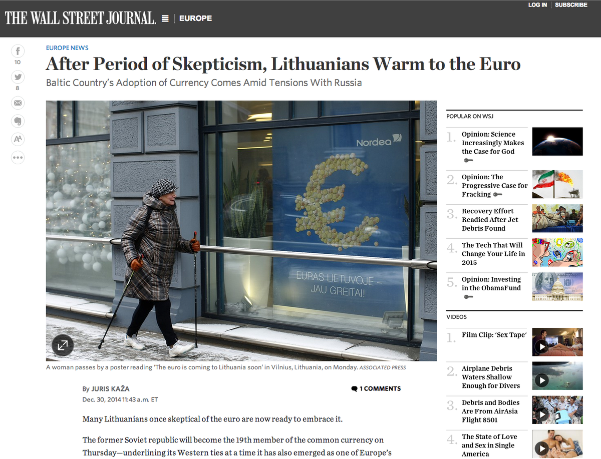 WSJ: The former Soviet republic will become the 19th member of the common currency http://goo.gl/1h0ZYG @iWozikpic.twitter.com/shEl4tITUj