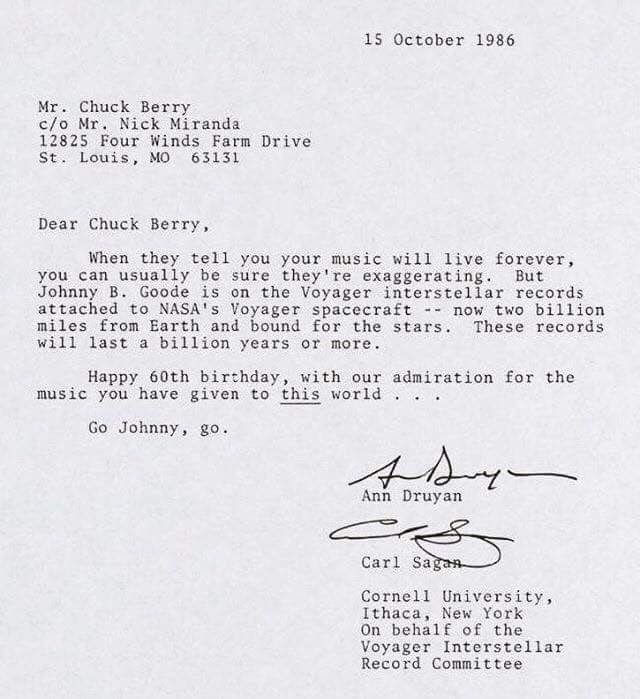Carl Sagan's letter to Chuck Berry, 1986. TY