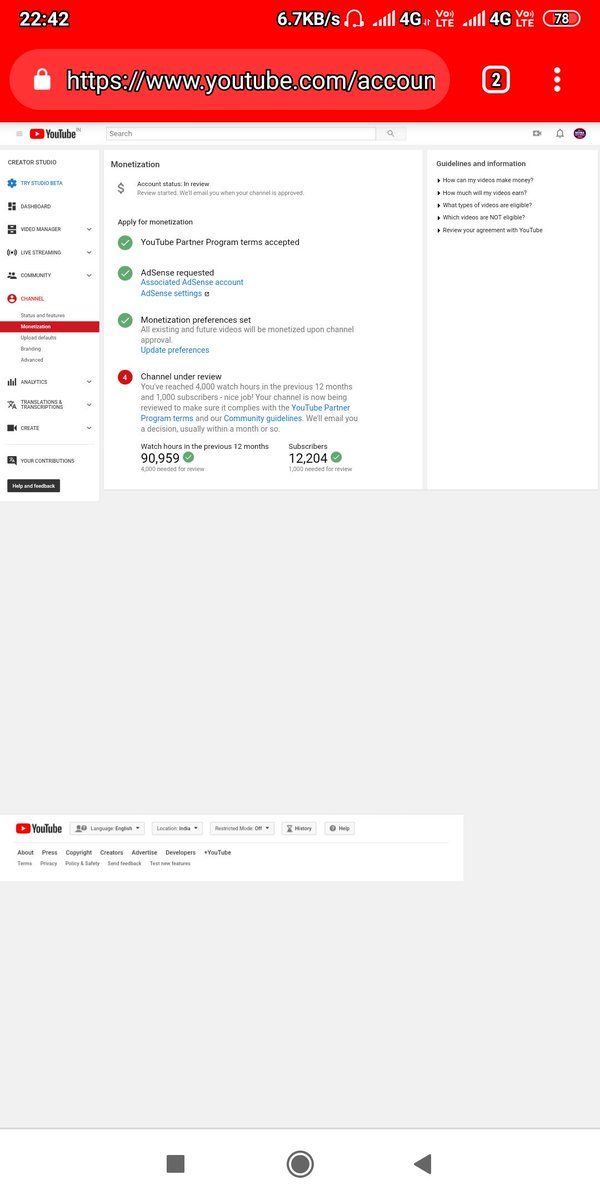 @TeamYouTube hello team ..Why my monetization not enabled yet ? .. plz enable my monetization and story tab also.. I will thankful to you .