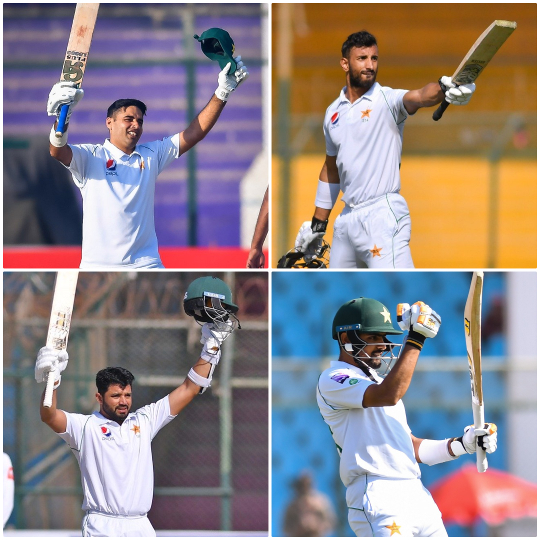Only the second instance in Test history of the top-four batsmen scoring 100s in the same innings. First time for Pakistan.