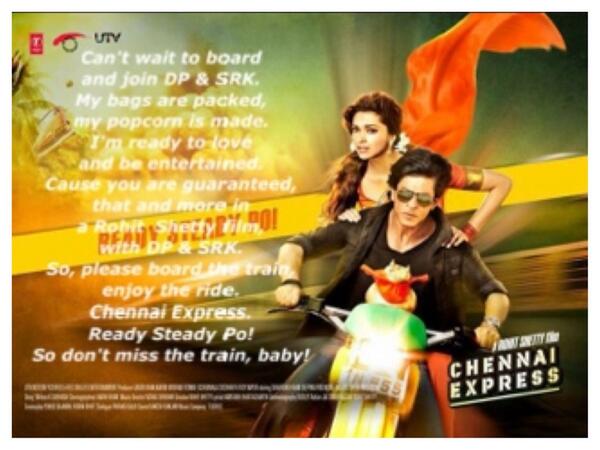@iamsrk Best part of#ChennaiExpress explaining situations by singing popularsongs...Thanks. Twitter will use this to make your timeline better. UndoUndo