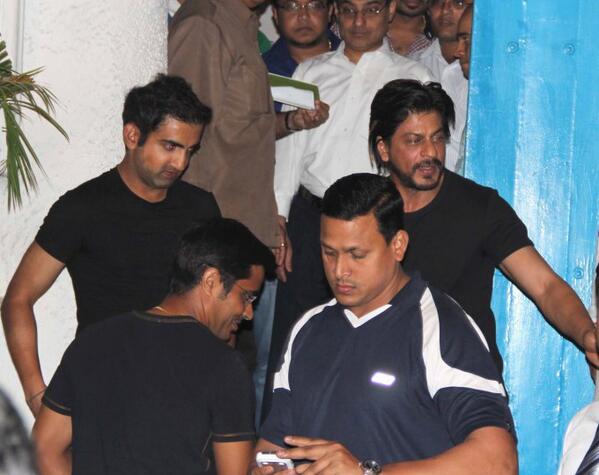 “@OhMyGuls @iamsrk snapped at Olive Bar Mumbai with @GautamGambhir @virendersehwag @drshahrukh ( New Pic ) pic.twitter.com/Ca9DX9ILWo”