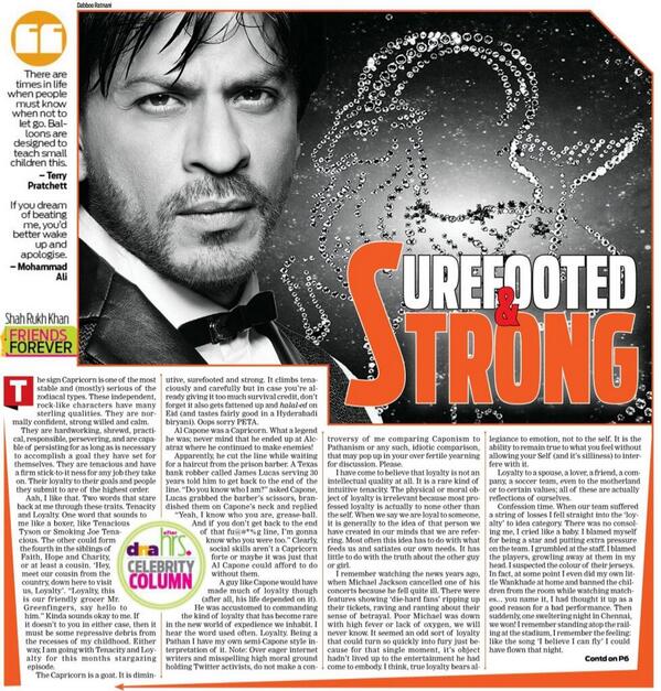 @iamsrk: Hope you all enjoy the DNA article. What I write is what I am. This one is very special…loyalty & tenacity.pic.twitter.com/TQ1USiJLqn