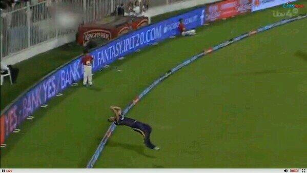 Chris Lynn's extraordinary catch to dismiss de Villiers.Turned the match & gave Kolkata an unexpected win over B'lorepic.twitter.com/jzDcprMGVh