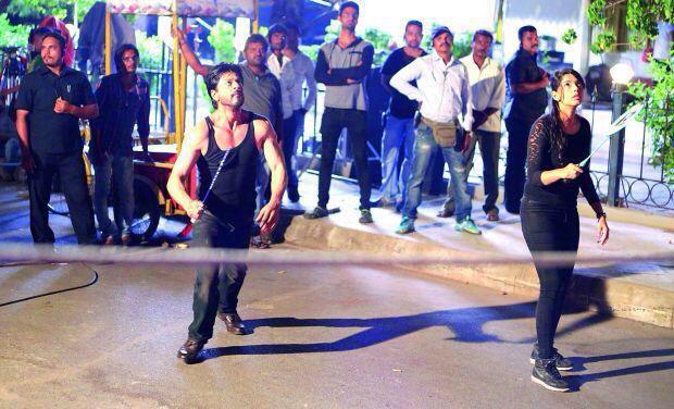 @iamsrk SRK playing Badminton on the sets of#Dilwalepic.twitter.com/ppqM2y46cT