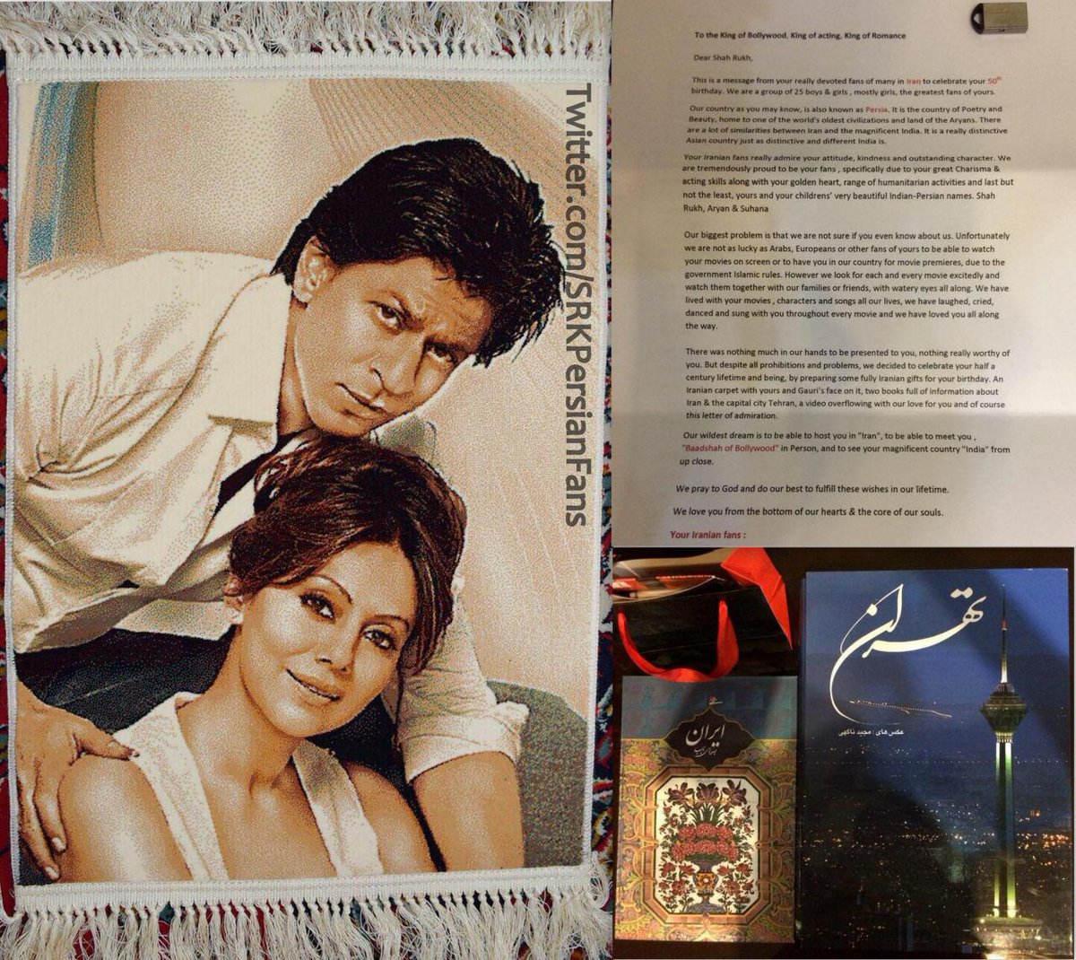 @iamsrk @MohanVedha This is a gift sent from #Iran for @iamsrk 50th.A small tribute from his Persian Fans .pic.twitter.com/DTfZf3CRom