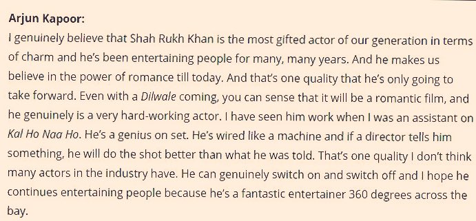 @iamsrk make Us believe in the power of Romance..says @arjunk26