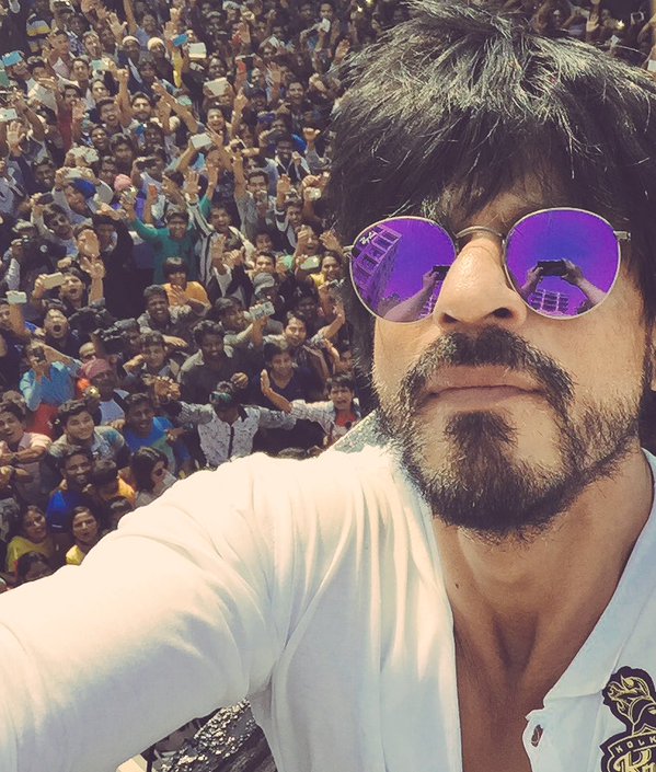 Happening right now: @iamsrk taking a selfie with fans celebrating his 50th birthday #HappyBirthdayKingKhanpic.twitter.com/SstH4GWMYh