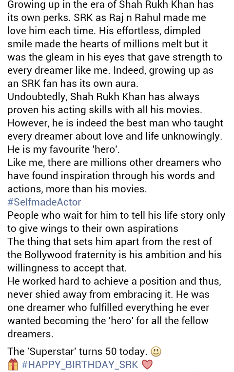 Shah Rukh Khan‏Verified account @iamsrk 9 Nov 2015