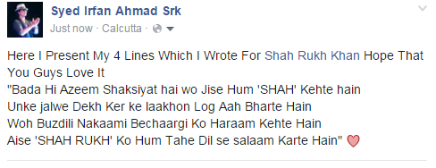 Here is My 4 Lines which I Wrote For @Iamsrk Some Months Back Sorry I couldnt complete it yet #HappyBirthdayKingKhanpic.twitter.com/Wza5xbCS9C