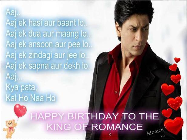 #HappyBirthdayKingKhan @iamsrk Happy Birthday ShahRukh!! hank u for all those dreamy evergreen romantic movies
