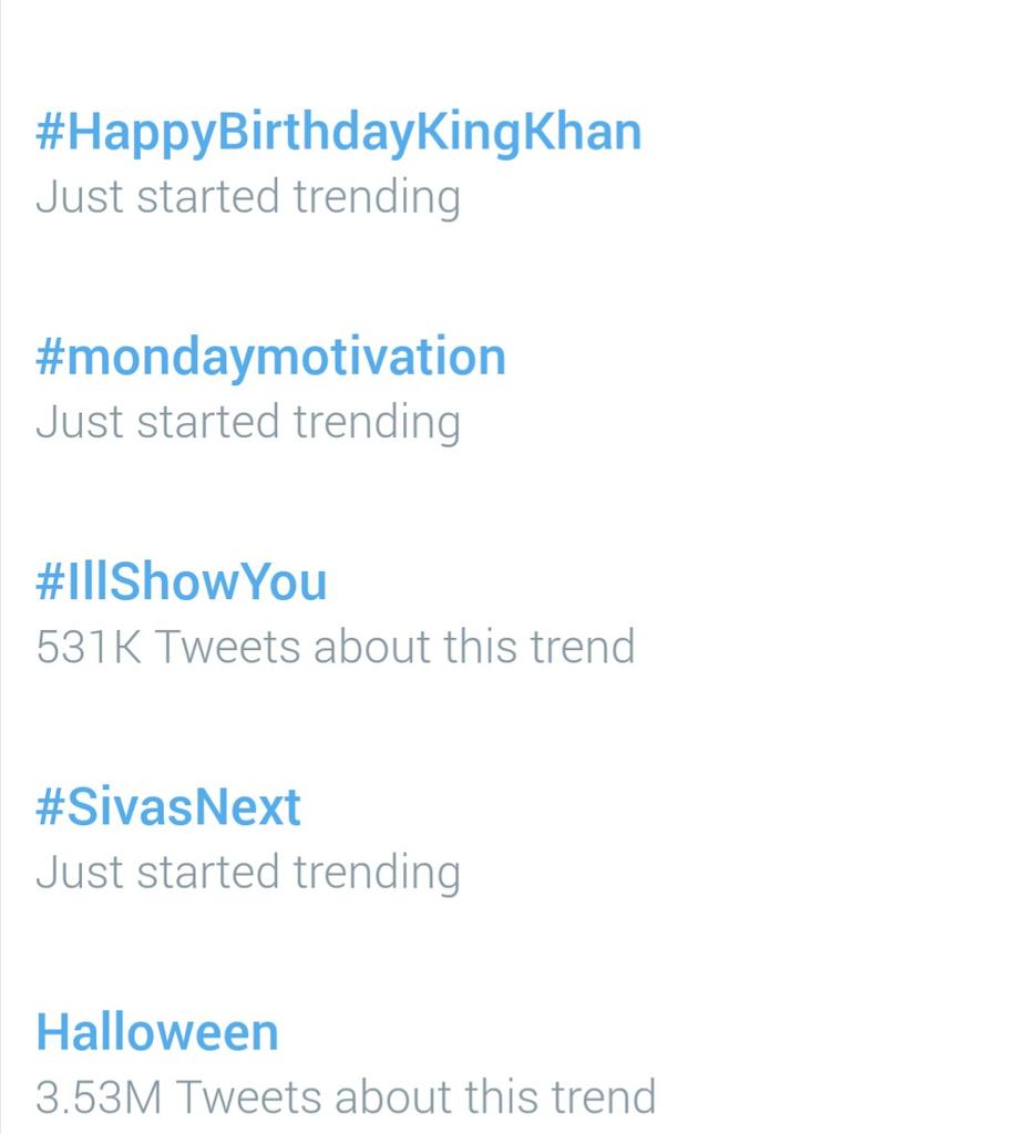 “@SRKUniverse: #HappyBirthdayKingKhan is already trending in India!