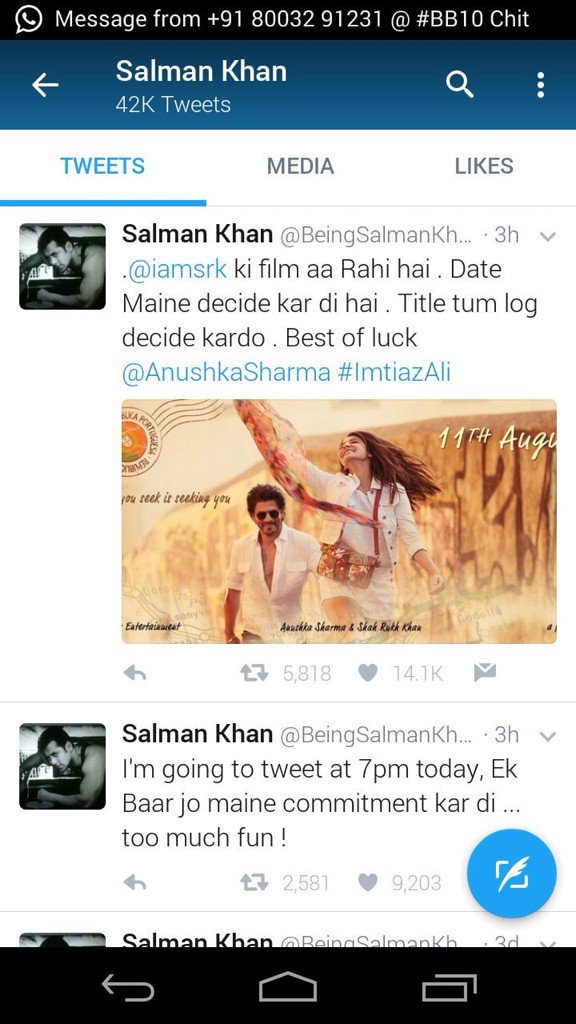 @BeingSalmanKhan KI SUPPORT HAMESHA APNY BACHON@iamsrk K STH REHTI HA KHUSHNASEEB HO BW MAI SK JEISA BAAP MILApic.twitter.com/v2oTdGAWzT