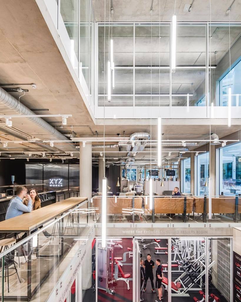 Cool split level cafe and gym area at the new XYZ building. Located in the heart of Spinningfield redevelopment photographed for