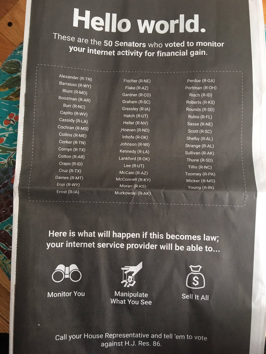 @nytimes today.#BroadbandPrivacy Call your Representatives and urge them to vote against H.J. Res. 86pic.twitter.com/YRLEJvHYKs