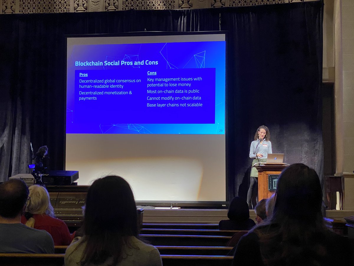 24/ Attendee lightning talk: Proof of personhood vs bots on decentralized social networks will be important. He is building a startup going after this.