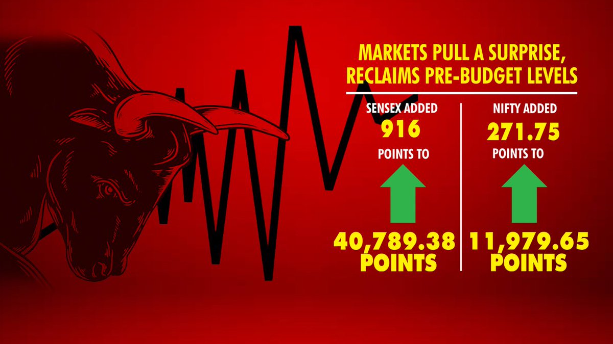 #Markets pull a surprise, reclaims pre-Budget levels#Budget2020#Budget#BSE#NSE#Sensexpic.twitter.com/j497gl7Fk0