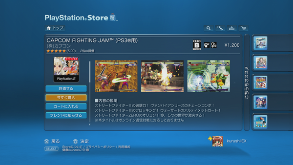 @iantothemax @SelfDecepticon RT @Kurushii: Capcom Fighting Jam is now on JP PSN for 1,200 yen.pic.twitter.com/areeyiRb