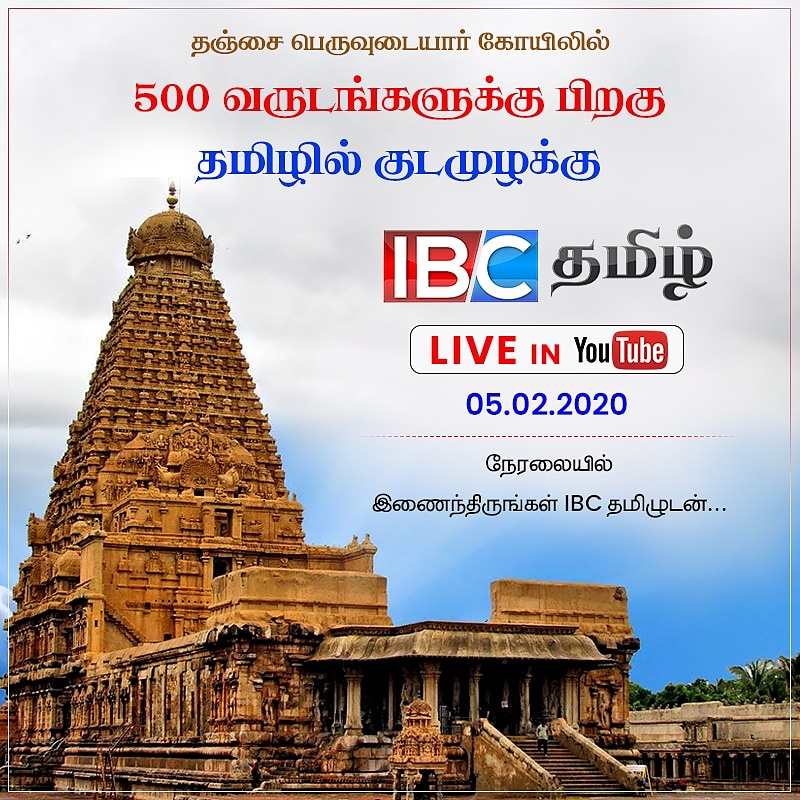 தஞ்சை பெருவுடையார் கோயிலில் 500 வருடங்களுக்கு பிறகு தமிழில் குடமுழக்கு உங்கள் IBC தமிழ் Youtube யில் நேரலை ஒளிபரப்பு காணத்தவறாதீர்கள் For more informative and trending videos , subscribe at : https://goo.gl/Tr986z