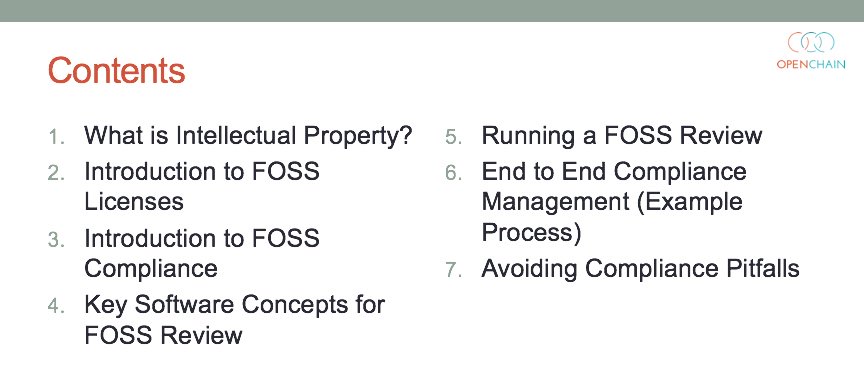 The @linuxfoundation's OpenChain has created a great #opensource compliance training material available to all: https://www.openchainproject.org/curriculum .pic.twitter.com/RtEaRaGKHt