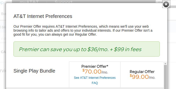 Gigabit internet for 70 bucks/month. Plus 30 if you don't want us to spy on you! You suck, AT&T.pic.twitter.com/8Dq1soAPl5