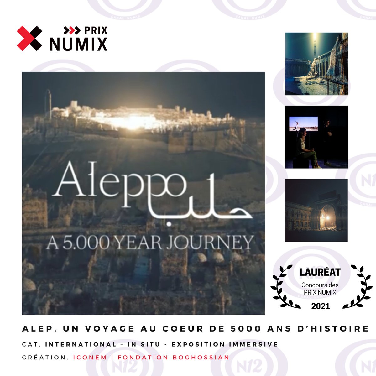L’exposition « Alep, un voyage au cœur de 5.000 ans d’histoire », présentée du 17 septembre 2020 au 18 avril 2021 à la Fondation Boghossian, à Bruxelles, a remporté cette année le @prixnumix dans la catégorie meilleure exposition immersive !pic.twitter.com/nktNG2PG2c