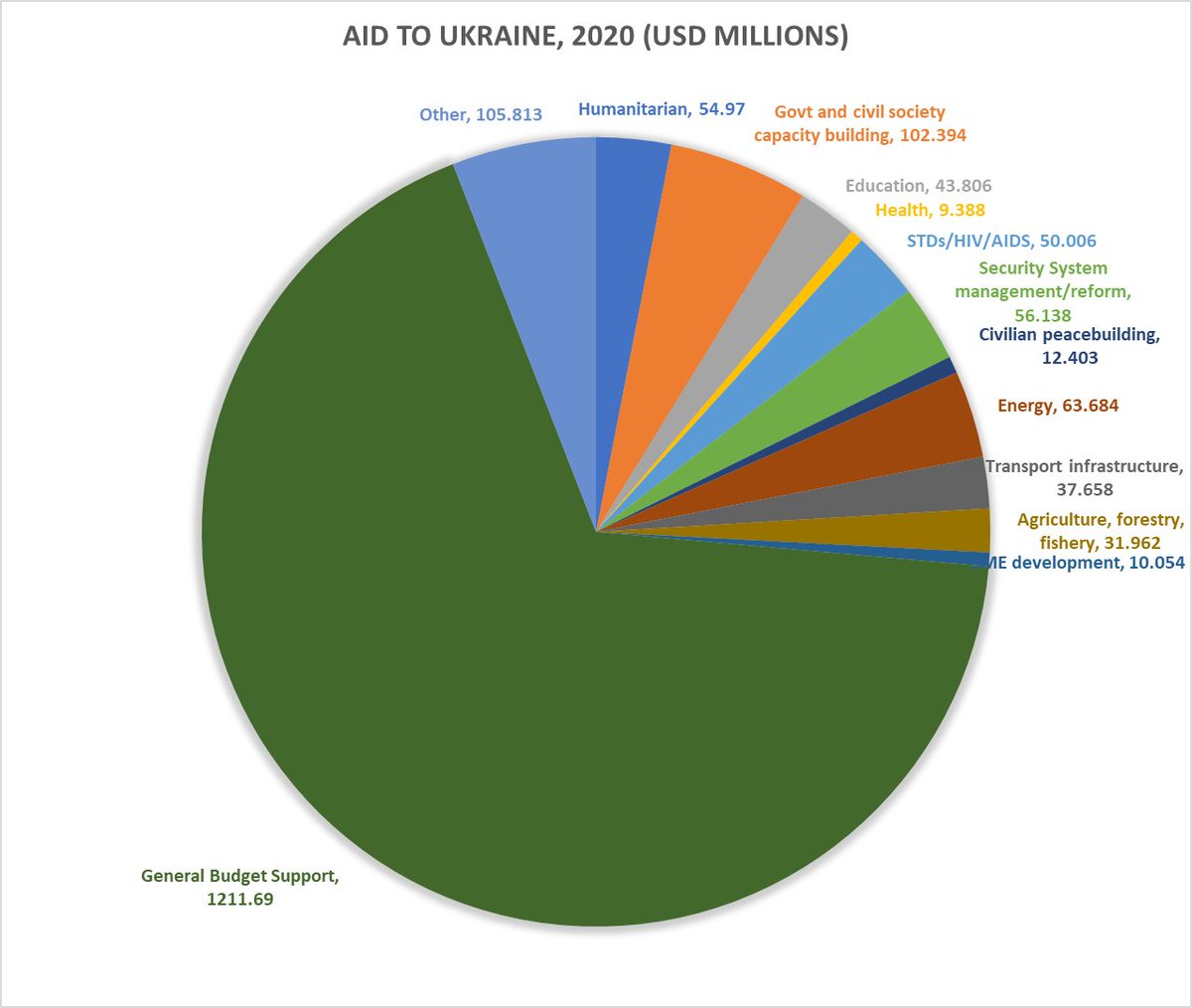#Ukraine if basic services + govt can continue to function.... Aid breakdown below (thanks@OECDdev CRS). Note the budget support... Please lets not "pause" this aid - its not right to shift the burden entirely over to humanitarianspic.twitter.com/MyNDh5U6H5