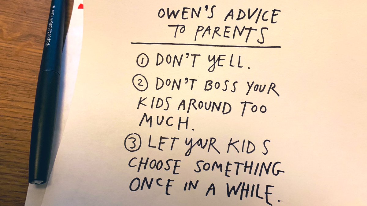 I asked my 7-year-old what pieces of advice he would give to parents. He only came up with three items, but it’s a pretty good start:pic.twitter.com/WFHBJPmcYX