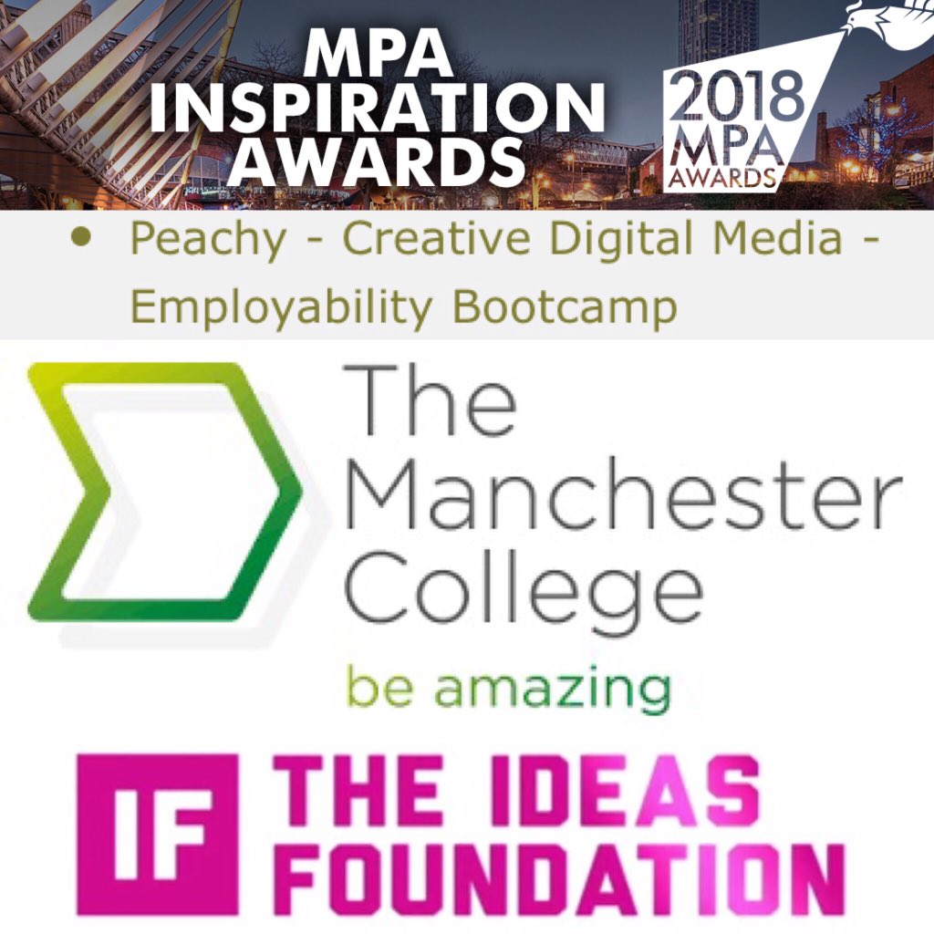 #proud that the@TheMcrCollege@TMCBCCI Creative Digital Media Employability Bootcamp with@ideasfoundation and@belindapeach1 is up for the Collaboration award at the@MPAweareyou#MPAAwards18 this year. It’s been so rewarding to be a part of it! http://www.mpa.org.uk/awards/mpa-awards-2018-shortlist …pic.twitter.com/j5ta1JlI6Y