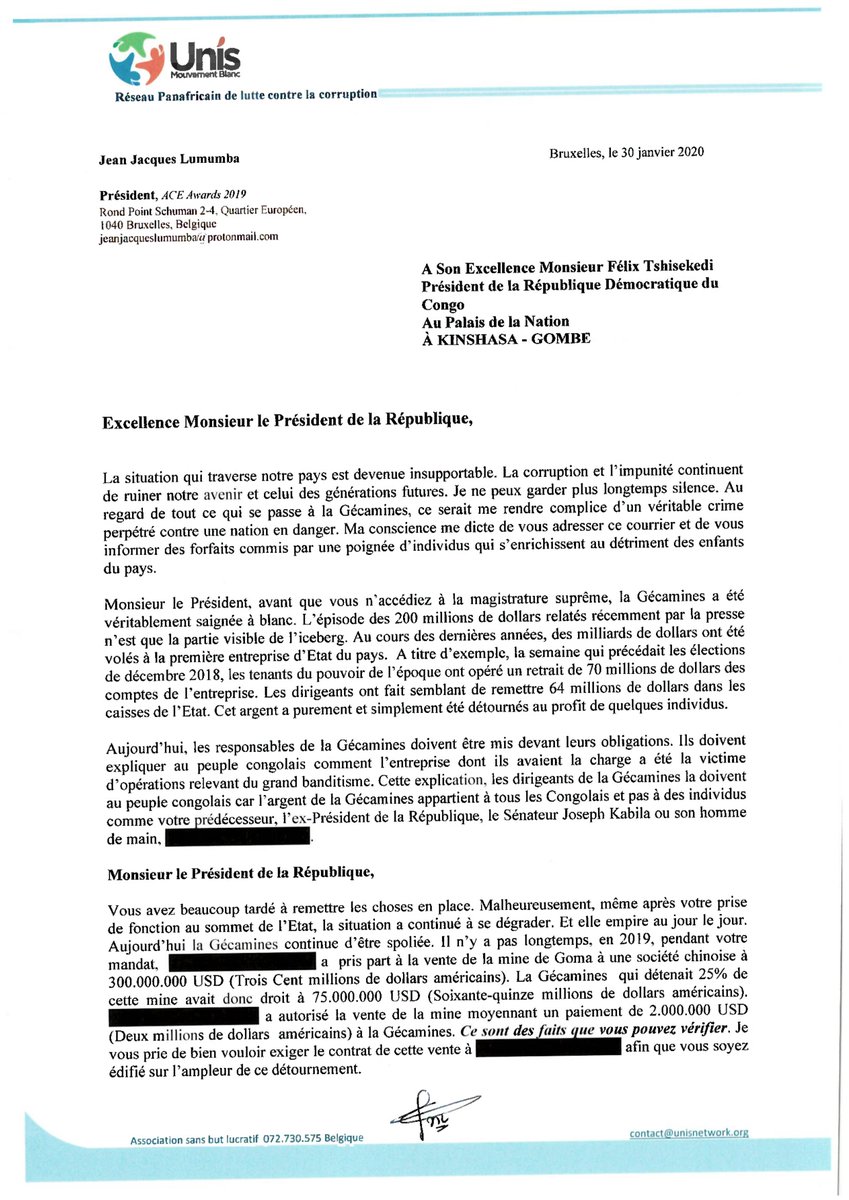 #Exclusif Dans une lettre adressée hier au président de la#RDC le lanceur d'alerte@LUMUMBAJj demande à Felix#Tshisekedi de faire la lumière sur les malversations passées au sein de la#Gecamines l'an dernier peu avant l'échéance électorale. pic.twitter.com/pmZcKMZHQT https://twitter.com/WenBash/status/1224658357631574023 …