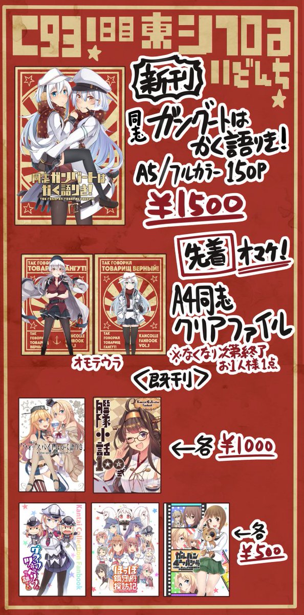 お品書きを作ってみました。 新刊のぶ厚さにはちょっと自信があります。 あと先着でクリアファイルをオマケでつける予定ですのでよければもらってください。 よろしくお願いします!pic.twitter.com/nHWXSAR7Bx