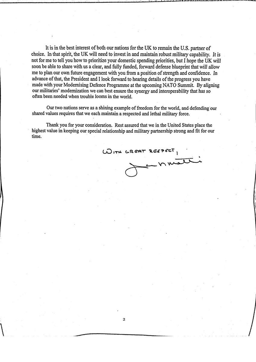 A well written letter from the head of DOD to request a top ally continue to spend generously on its military. This is the most normal thing to happen today in Washington. He probably wants his own budget bigger too. Just imagine a dept. head wanting that.