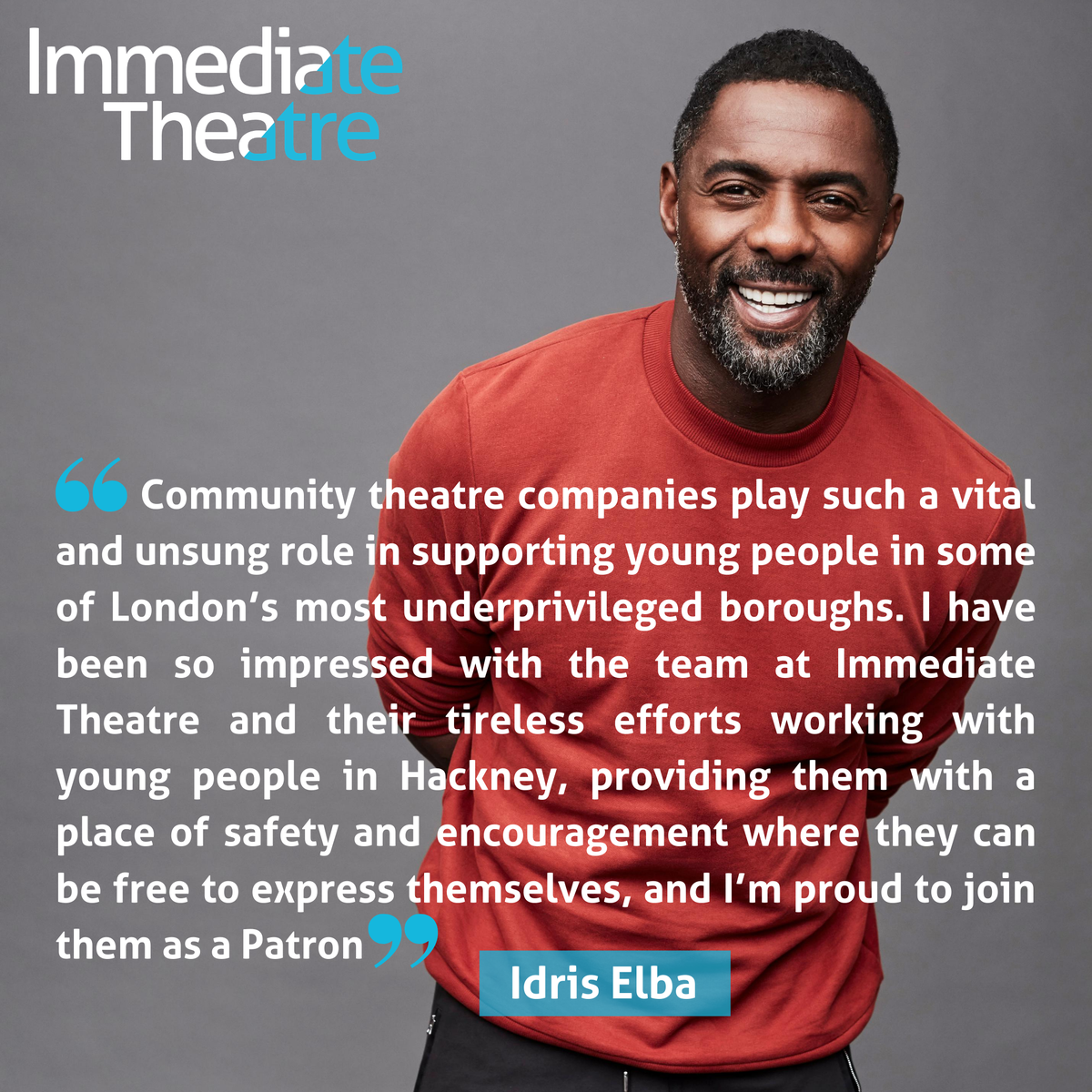I’m really excited (possibly more than I should be at my age) that Idris Elba is our first patron. As Chair of the board of trustees I extend a welcome to