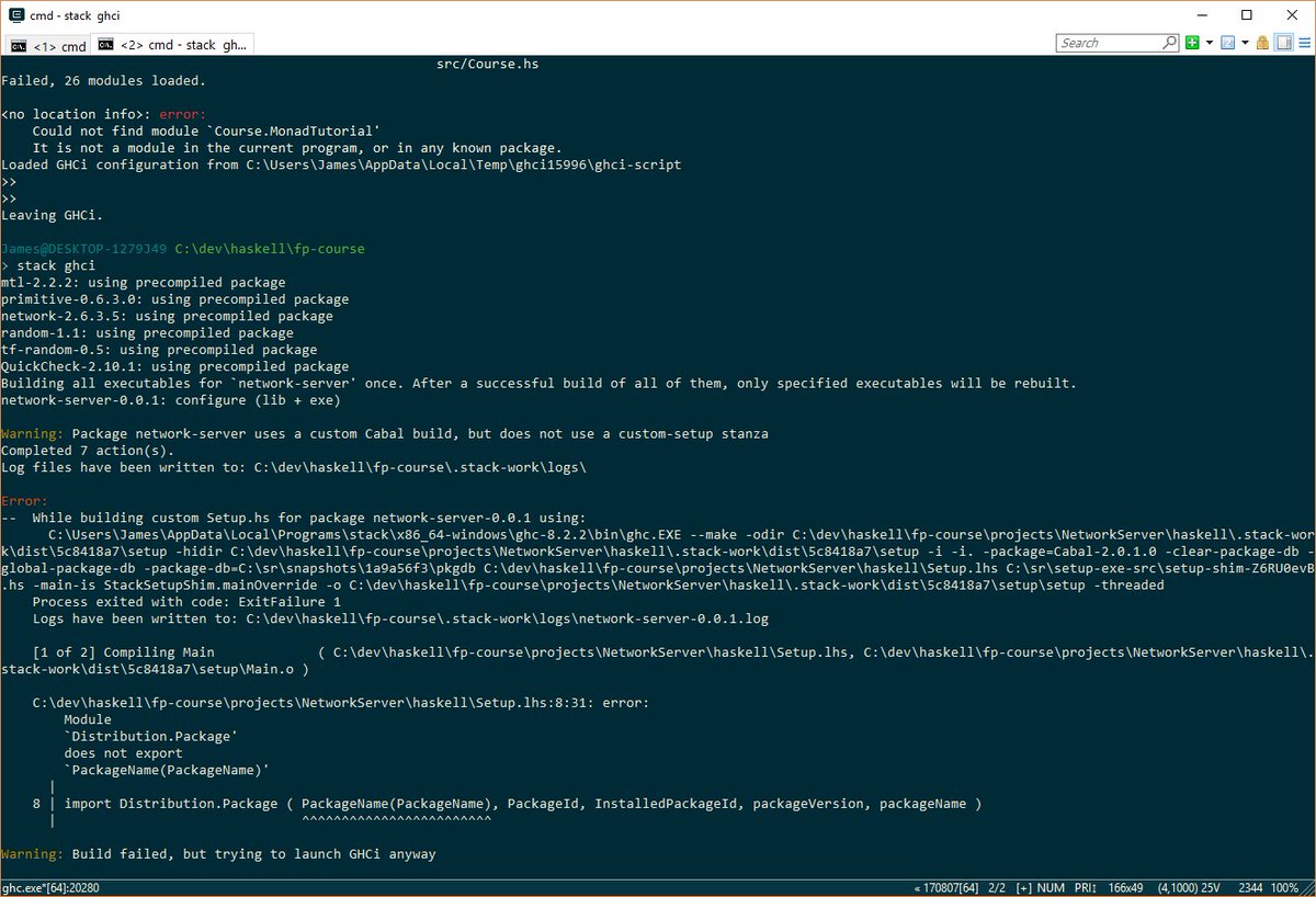 I'm not trying to provoke an argument @dibblego and I appreciate all the material you and @bitemyapp put out there. I'm just trying point out some actual impediments I have faced when trying to learn haskell. I got comfortable with one set of tooling, now I have to ditch it.pic.twitter.com/NCXX0z5sH4