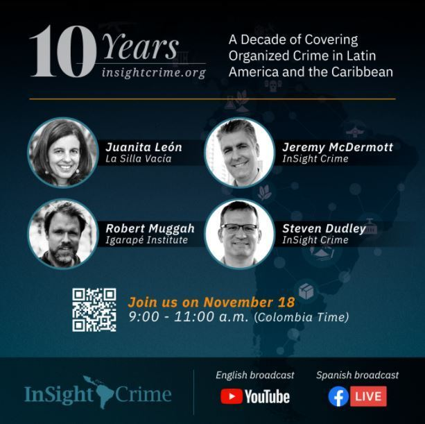 @InSightCrime_es@jerrymcdermott &@stevensdudley mañana en una charla con@jleonlasilla de@lasillavacia y@robmuggah de@igarape_org para celebrar los 10 años de trabajo en América Latina. https://bit.ly/32Vb5K9#10YearsInSightCrimepic.twitter.com/7P7ONOfIsI