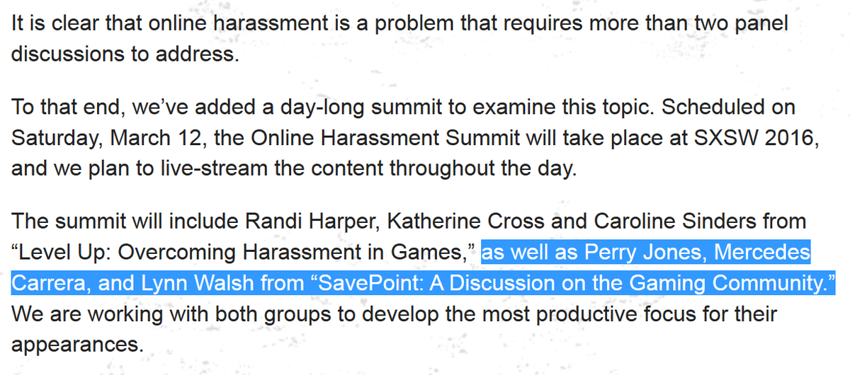 "SXSW Announces March 12 Online Harassment Summit" ... *decides to put GamerGate on the harassment panel* W.T.F...pic.twitter.com/xR5jdeykuL