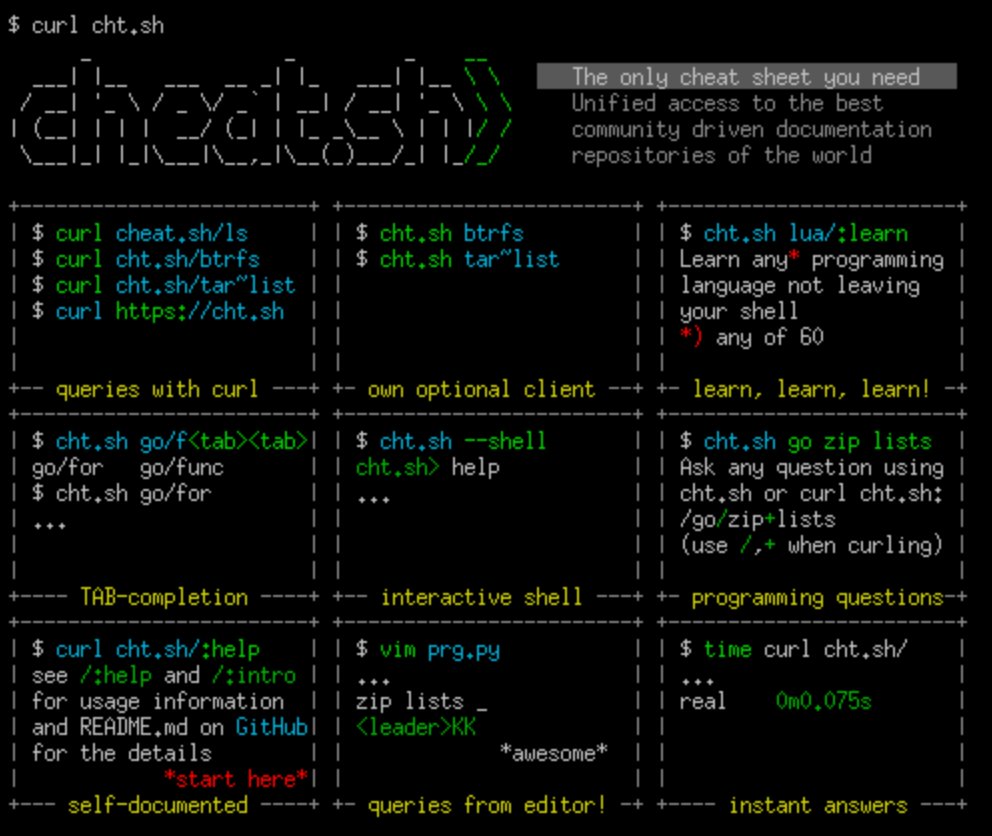 chubin / http://cheat.sh : the only cheat sheet you need ★920https://github.com/chubin/cheat.sh
